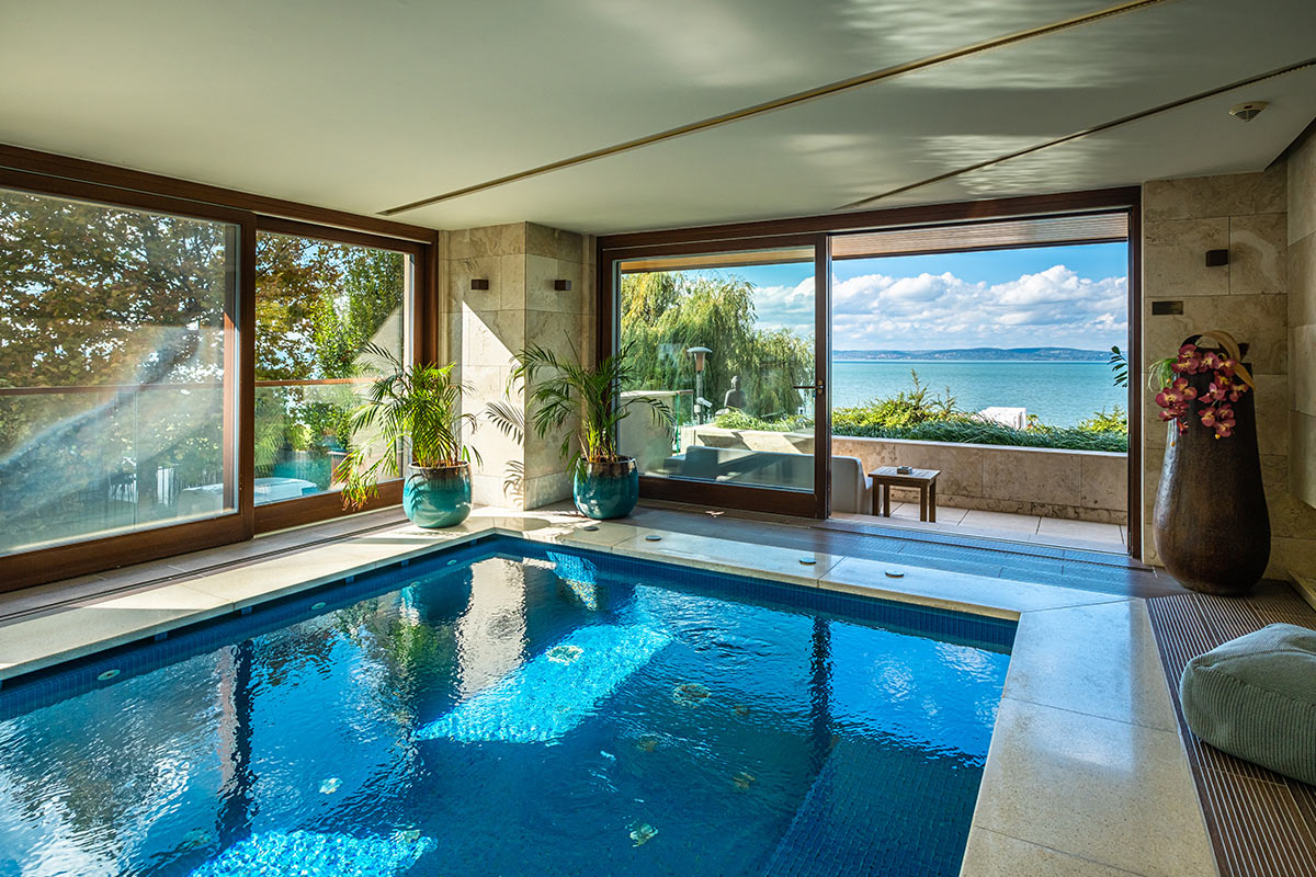 A 100 m2-es lakosztály, a nevéhez híven, privát wellness élményt biztosít Vendégeinknek. A balatoni oldalpanoráma és a 60 m2-es terasz kiegészül egy 4 fős étkezőasztallal, Swan Italy űlőgarnitúrákkal, egy Carlo Urbinati által megálmodott, kétszemélyes, eredeti Jacuzzi Aura Plus hidromasszázskáddal, továbbá külön zuhanyzóval és Chopard luxus hotel kozmetikumokkal.
